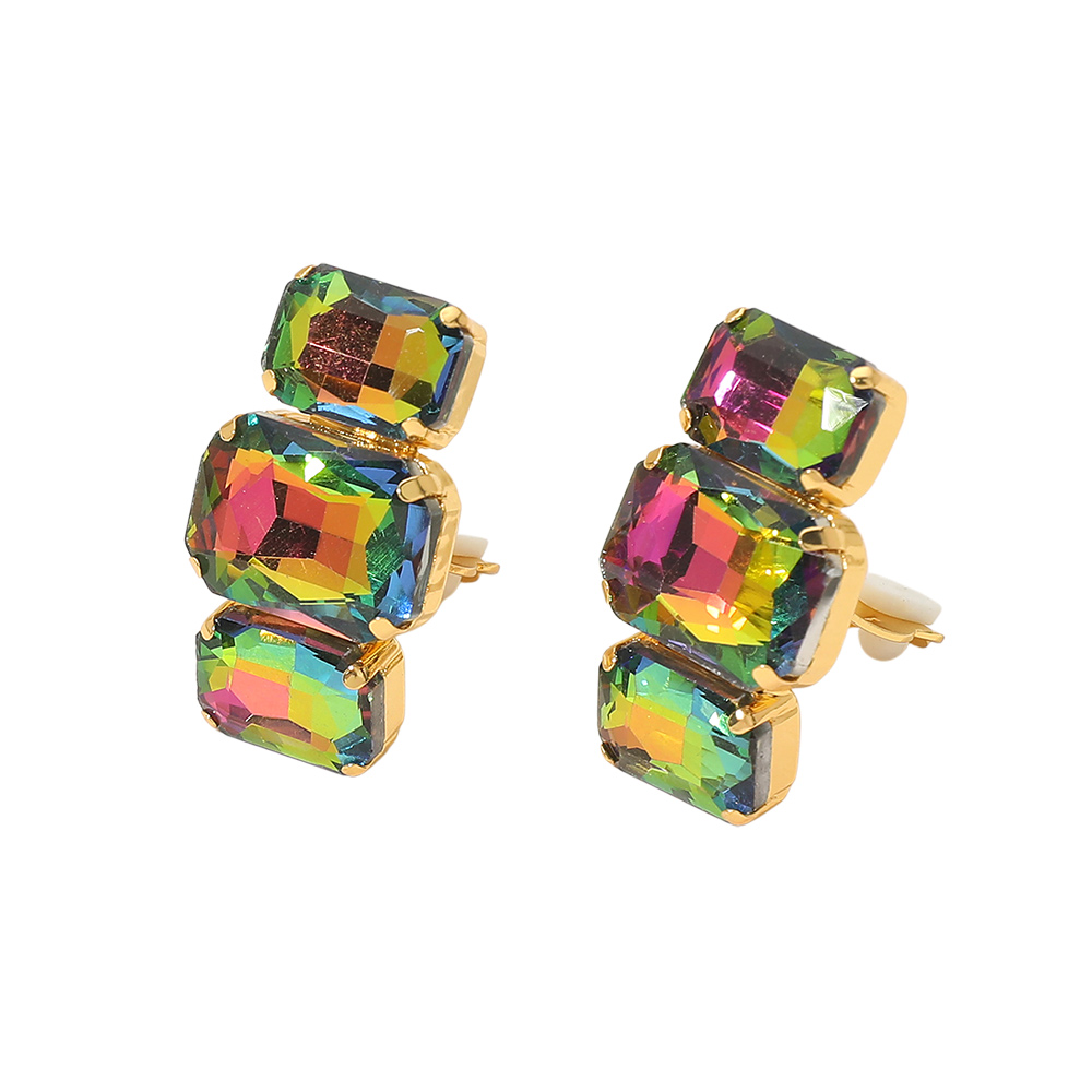 Triple Rectangular Faceted Stone Evening Clip On Earrings