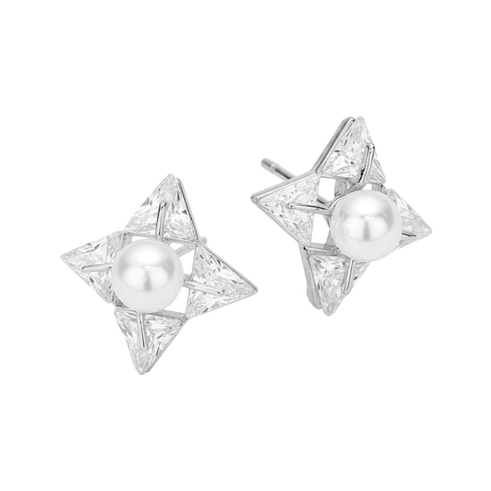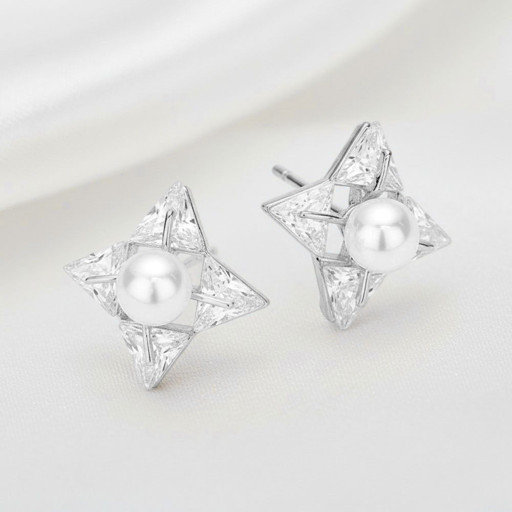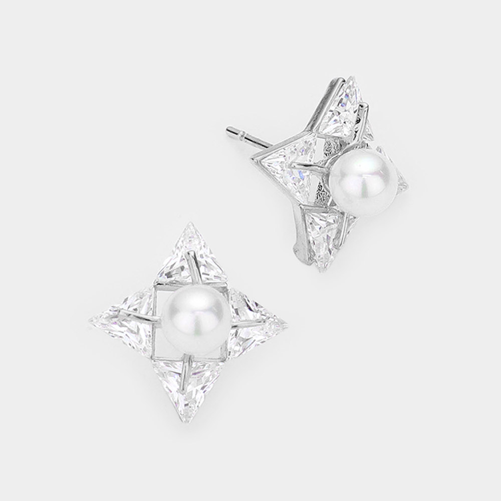 Pearl Centered Crystal CZ Stone Star Stud Earrings Pearl Centered Crystal CZ Stone Star Stud Earrings Pearl Centered Crystal CZ Stone Star Stud Earrings