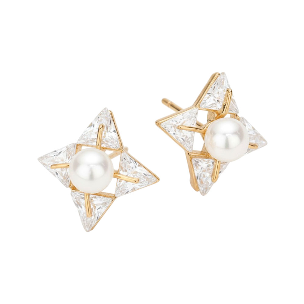 Pearl Centered Crystal CZ Stone Star Stud Earrings