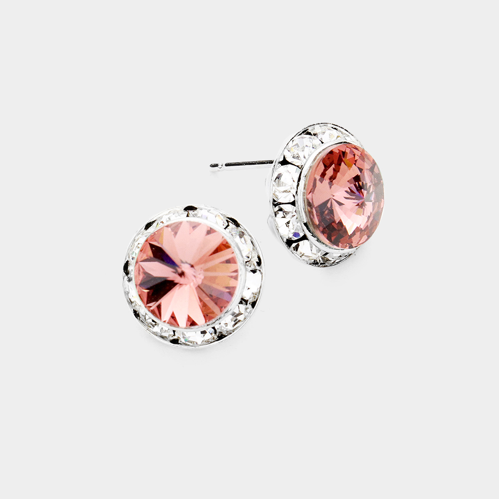 Rivoli Cut Genuine Crystal Round Stud Earrings