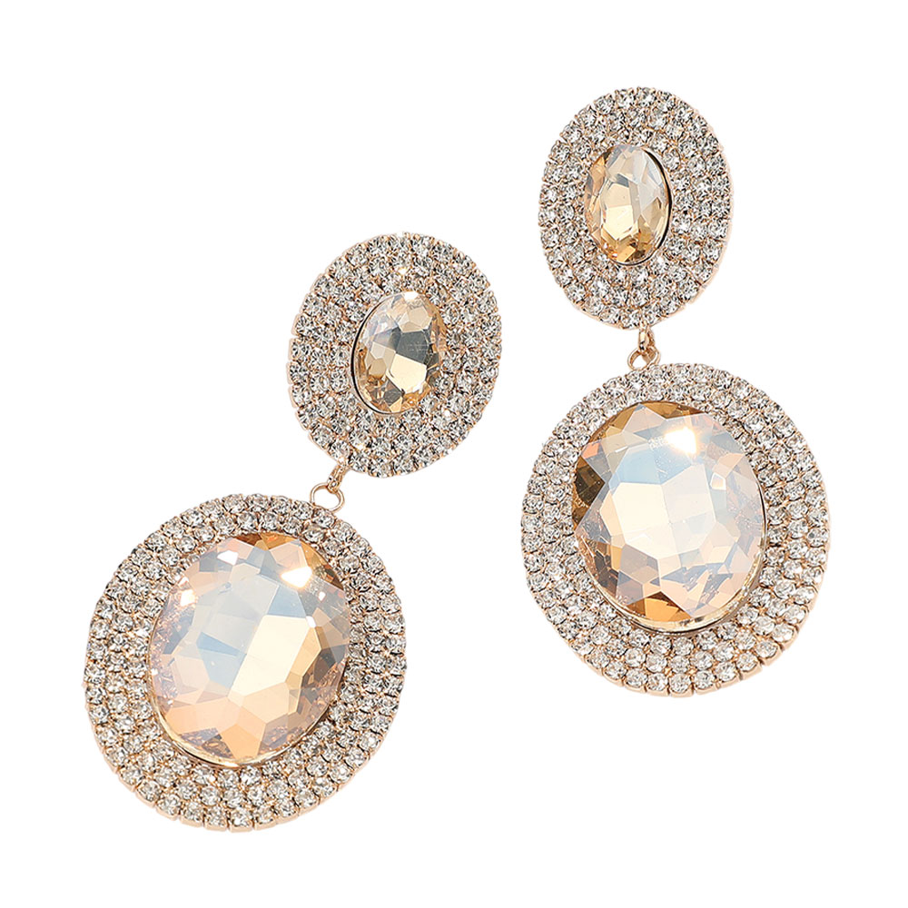 • Glamorous double oval drop earrings featuring faceted stones framed by shimmering pave halos. Perfect for weddings, parties, evening events or adding show-stopping sparkle to any outfit. A statement accessory with radiant, eye-catching elegance.