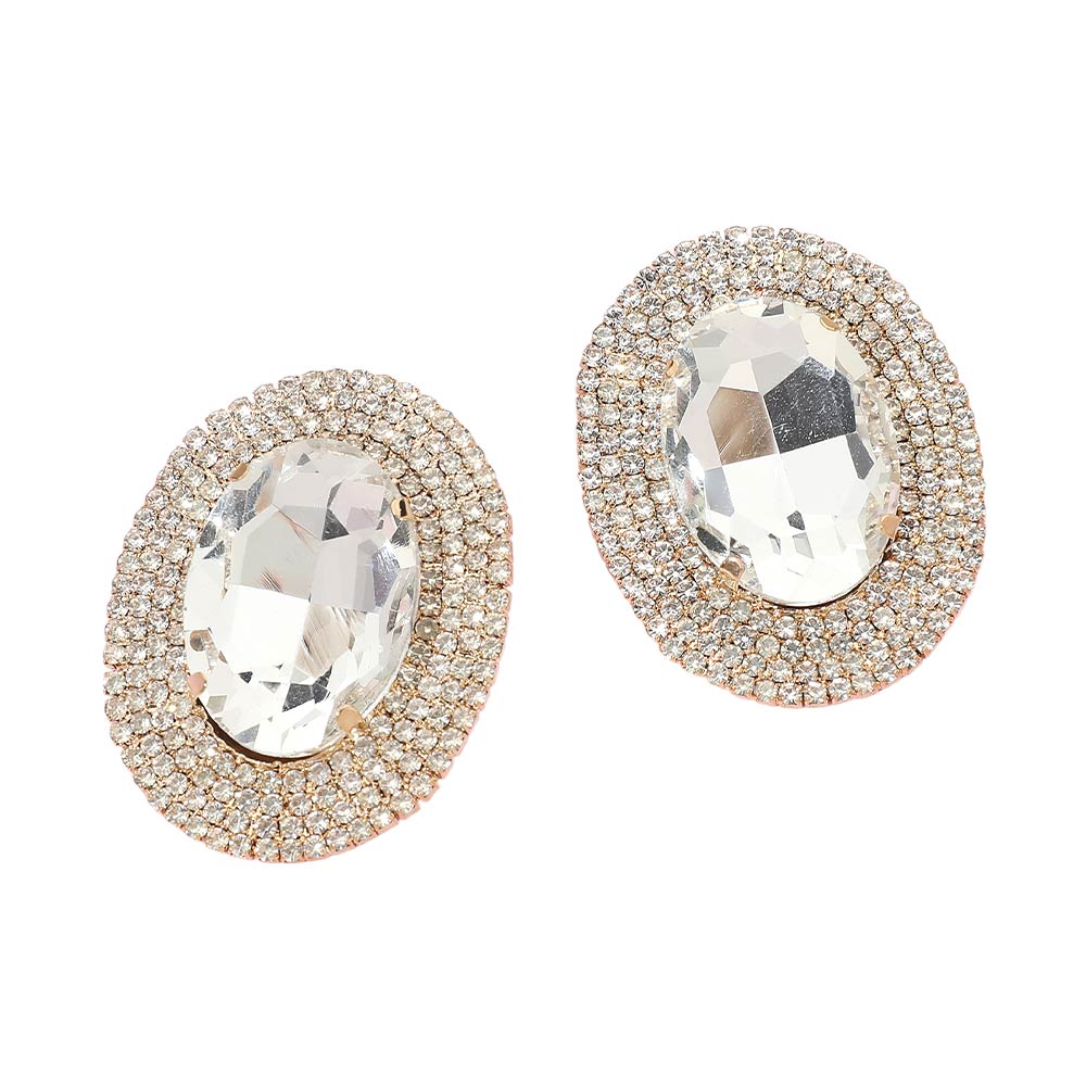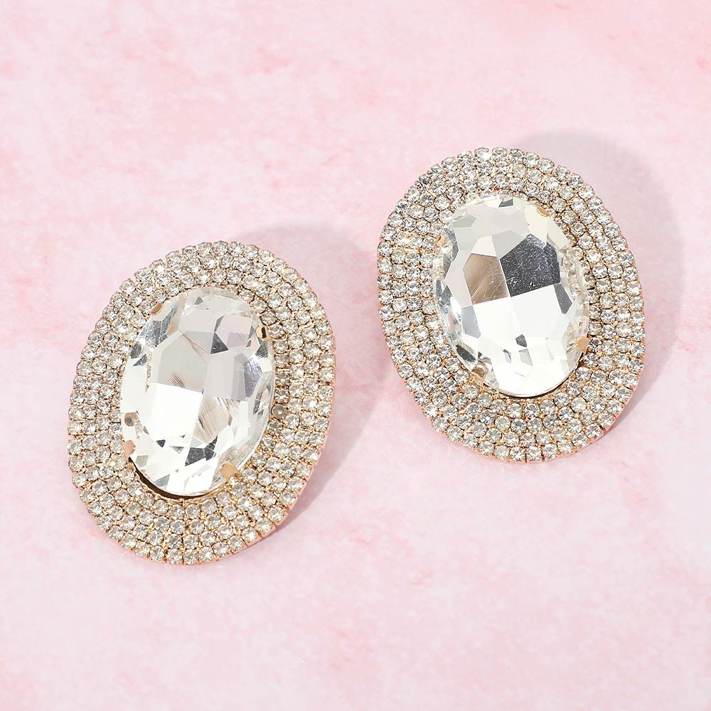 • These oval halo statement stud earrings feature a bold faceted center framed by shimmering accents that reflect light with every movement. Designed to add instant polish, they elevate everyday outfits and special occasion looks alike. The classic stud silhouette offers comfortable wear while delivering standout sparkle, making them ideal for parties, events, or refined glamour styling.