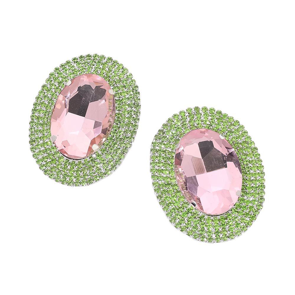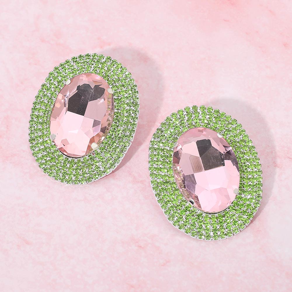 • These oval halo statement stud earrings feature a bold faceted center framed by shimmering accents that reflect light with every movement. Designed to add instant polish, they elevate everyday outfits and special occasion looks alike. The classic stud silhouette offers comfortable wear while delivering standout sparkle, making them ideal for parties, events, or refined glamour styling.