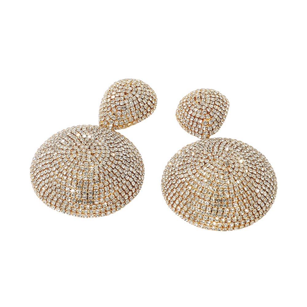Bold Rhinestone Pave Dome Drop Statement Earrings