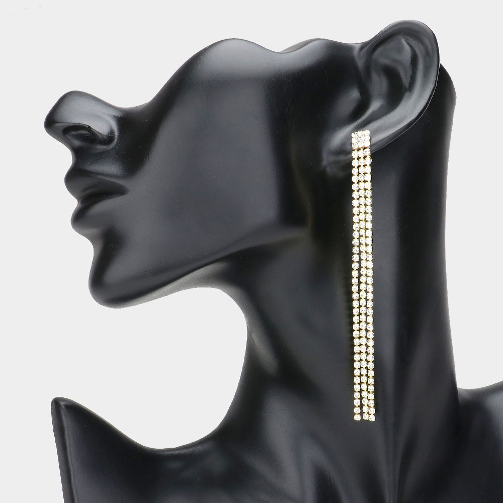 Crystal Rhinestone Fringe Evening Earrings
