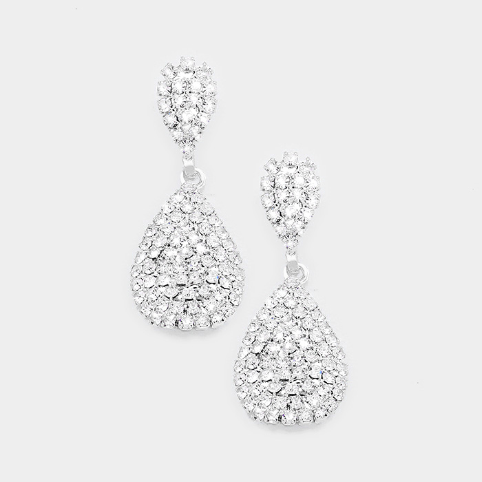 Crystal Rhinestone Pave Teardrop Evening Earrings