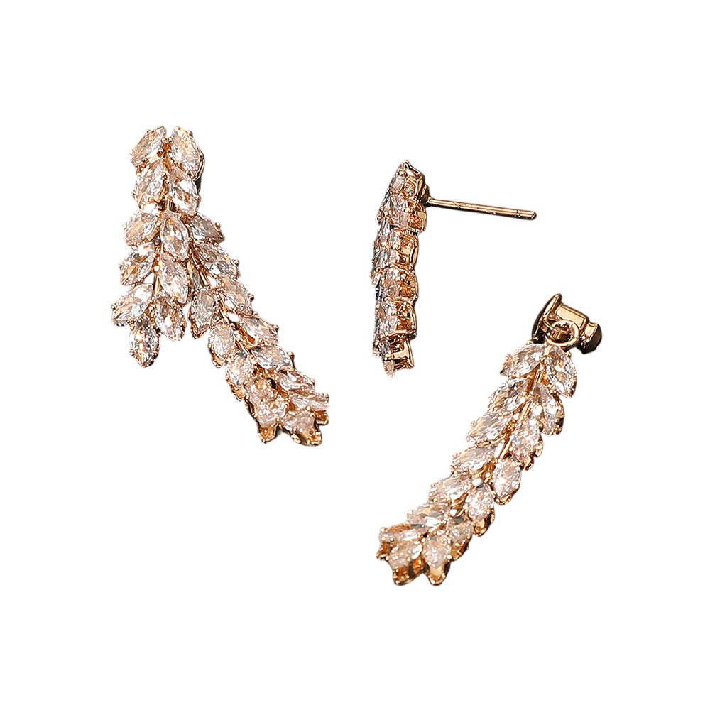 CZ Marquise Stone Leaf Cluster Drop Evening Earrings