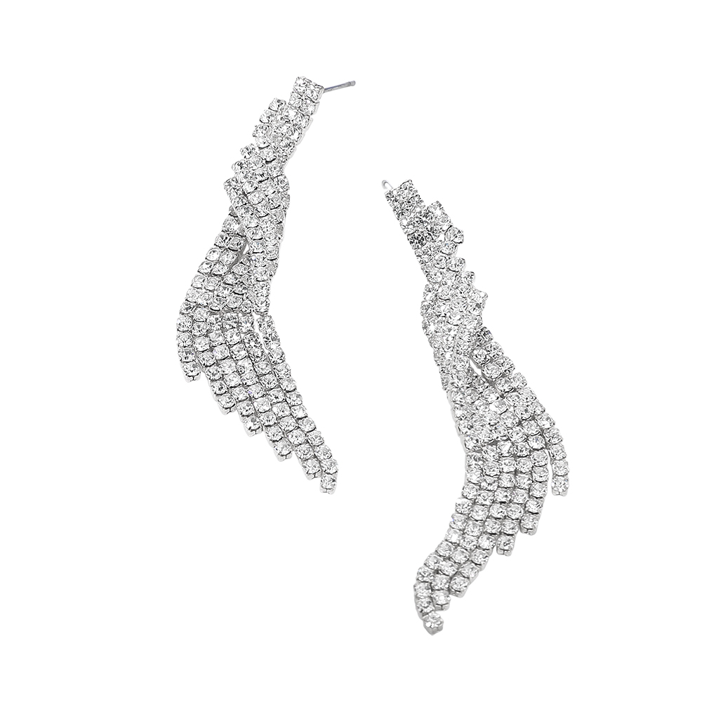 • Stylish dangle earrings featuring cascading cz rhinestone tassels in a layered fringe design. The flowing strands create elegant movement, perfect for evening wear, parties, and adding a touch of glamour to any outfit.