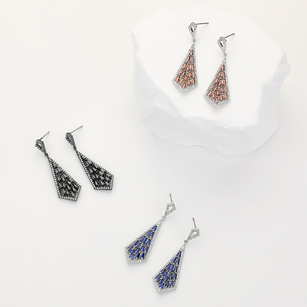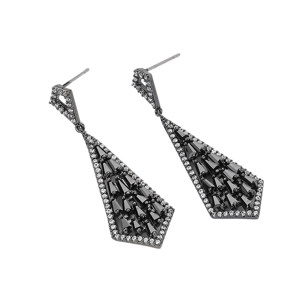 CZ Tapered Baguette Stone Cluster Dangle Evening Earrings