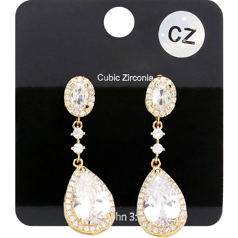 CZ Teardrop Accented Dangle Evening Earrings