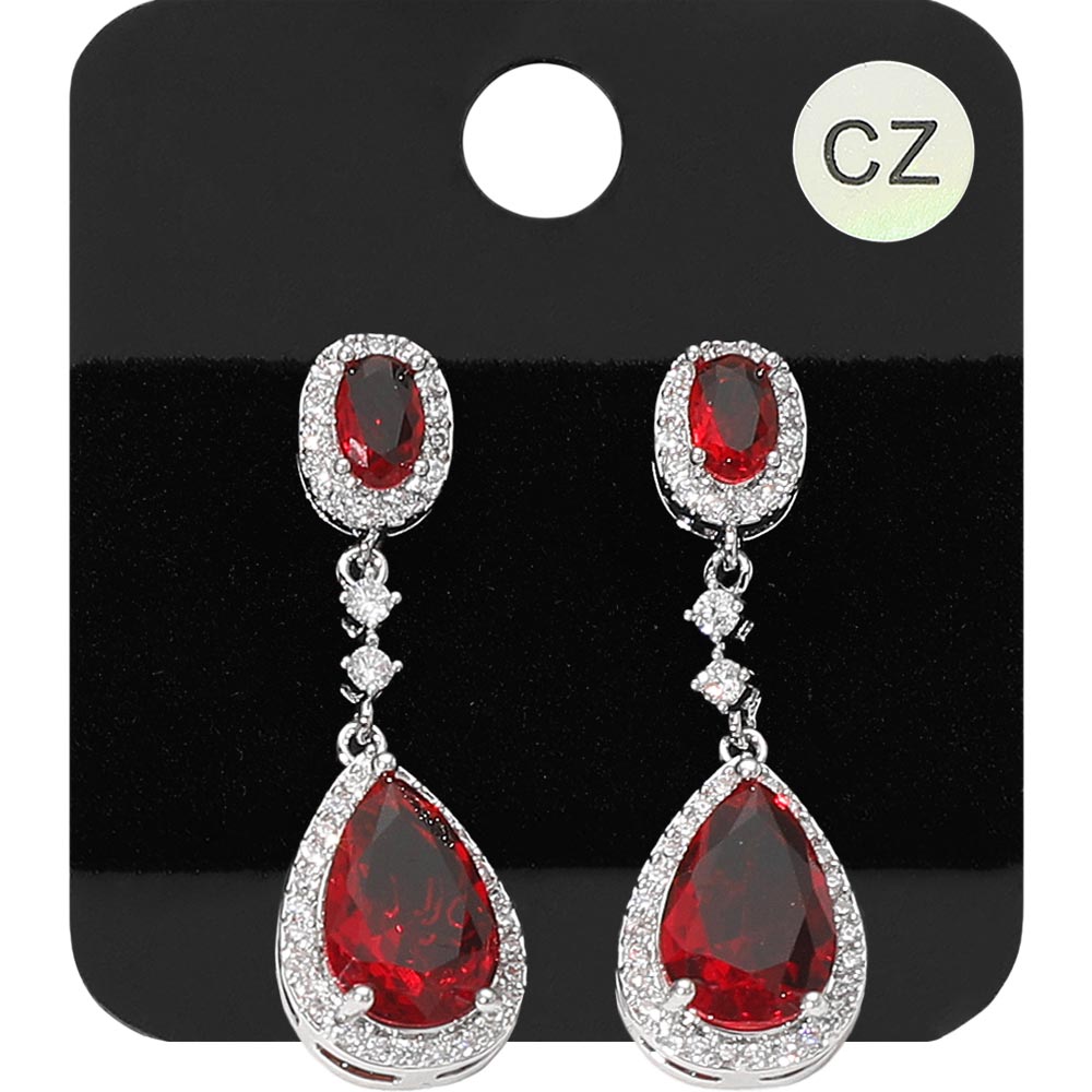 Details • Size : 0.4" X 1.3" • Post Back • These cubic zirconia teardrop dangle earrings showcase an elegant combination of oval and drop-shaped stones that radiate timeless beauty. Designed for formal occasions or special events, they bring sophistication and sparkle to any outfit, making them a graceful statement piece. • Lead and Nickel Compliant • CZ Cubic Zirconia