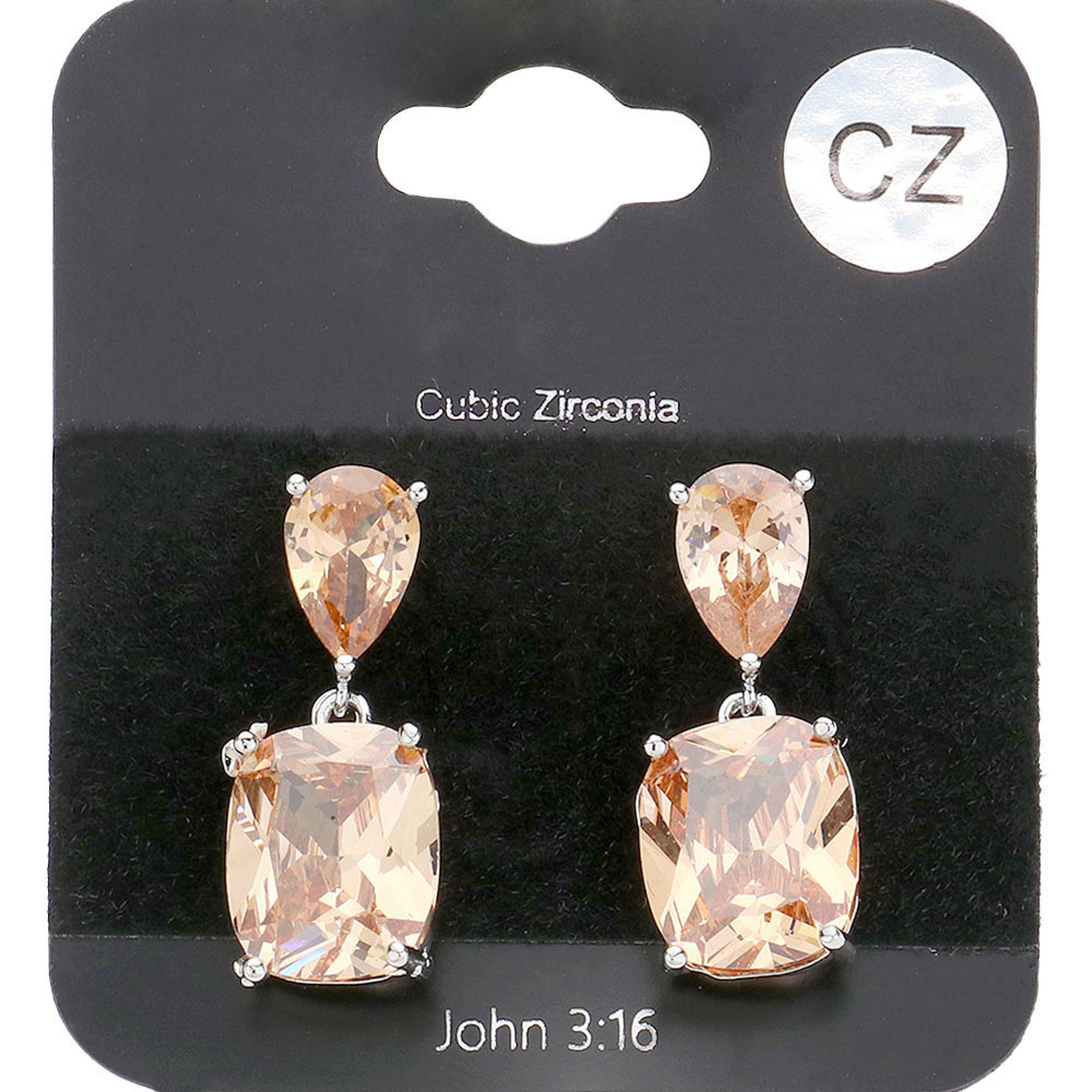 CZ Teardrop Rectangle Stone Cluster Dangle Evening Earrings
