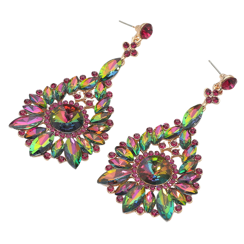 • Make an unforgettable impression with these statement teardrop crystal earrings. Designed with intricate faceted stones in a radiant arrangement, they capture light beautifully for a luxurious look—perfect for evening events, weddings, and glamorous nights out.