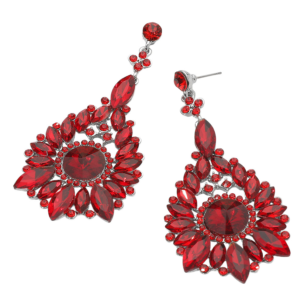 • Make an unforgettable impression with these statement teardrop crystal earrings. Designed with intricate faceted stones in a radiant arrangement, they capture light beautifully for a luxurious look—perfect for evening events, weddings, and glamorous nights out.
