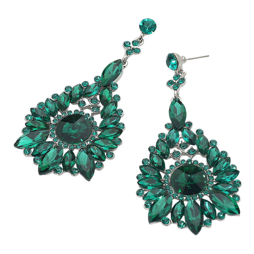Flower Teardrop Stone Cluster Dangle Evening Earrings