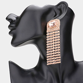 Emerald Cut Stone Accented Rhinestone Fringe Dangle Evening Earrings