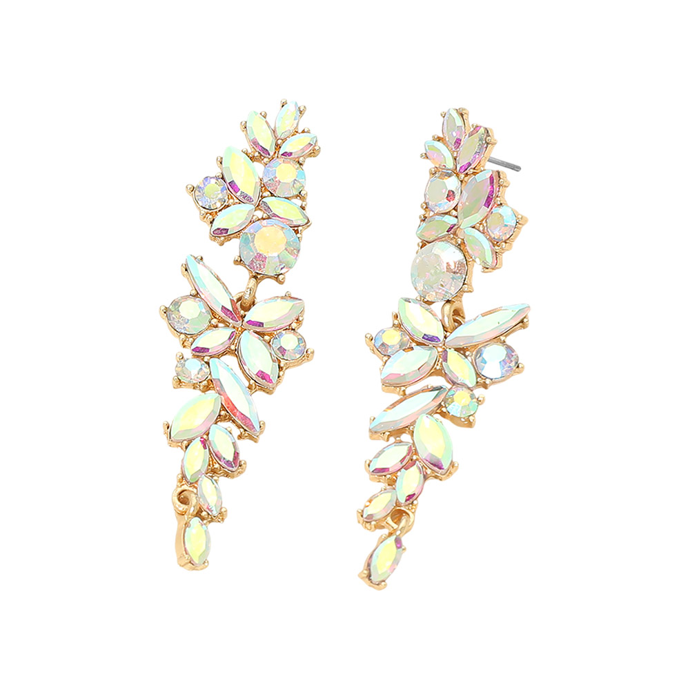 • These floral cluster drop statement earrings feature a cascading arrangement of faceted stones in an elegant vertical silhouette. Designed to create eye-catching movement and refined sparkle, they add dramatic impact while remaining graceful. Ideal for evening events, weddings, parties, and elevated everyday styling, making them a standout addition to any fashion jewelry collection.