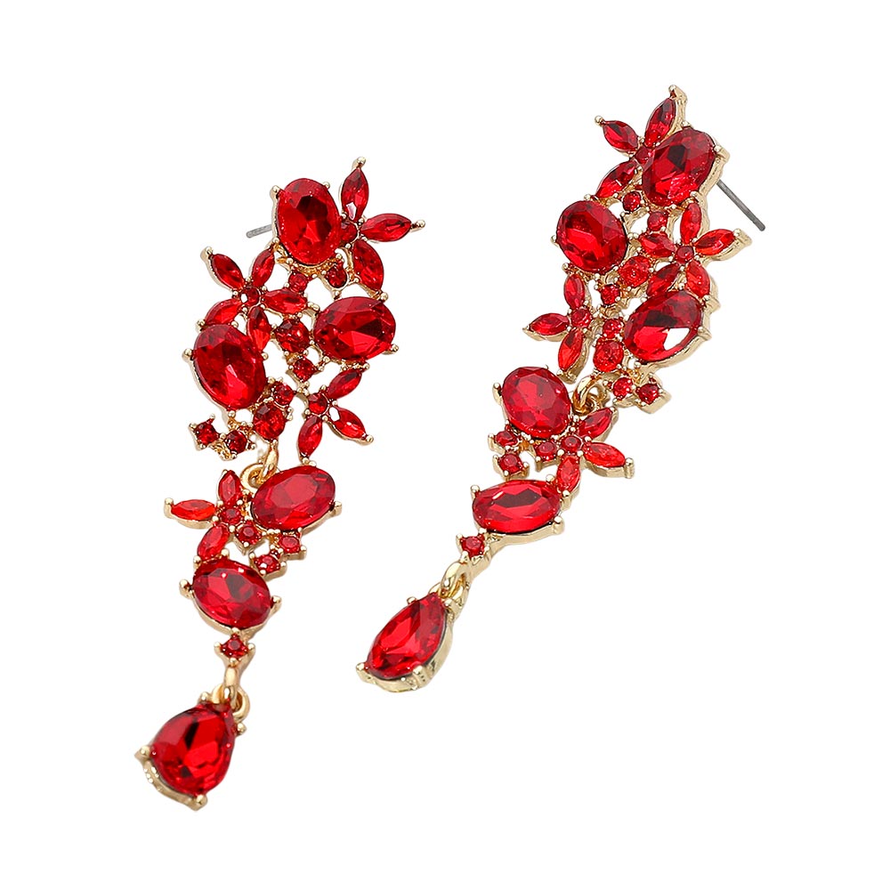 Floral Gem Cluster Drop Evening Earrings Floral Gem Cluster Drop Evening Earrings