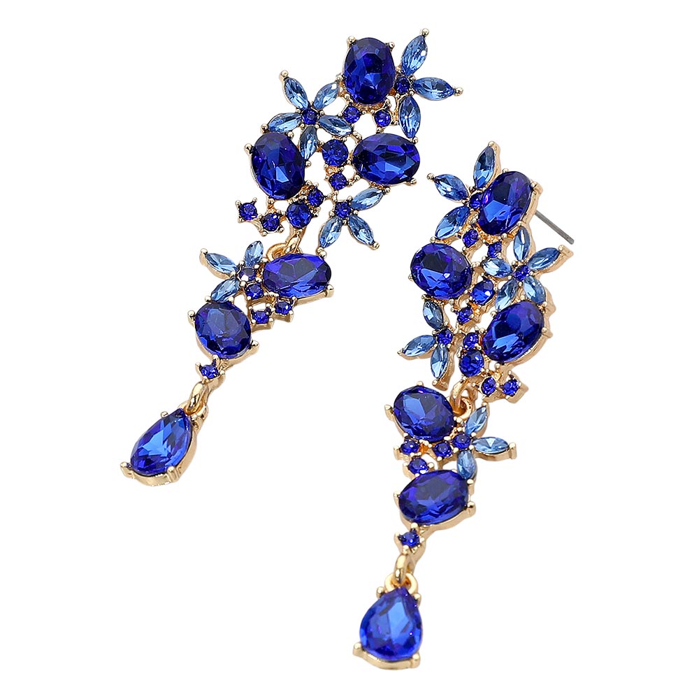 Flower Teardrop Stone Cluster Dangle Evening Earrings