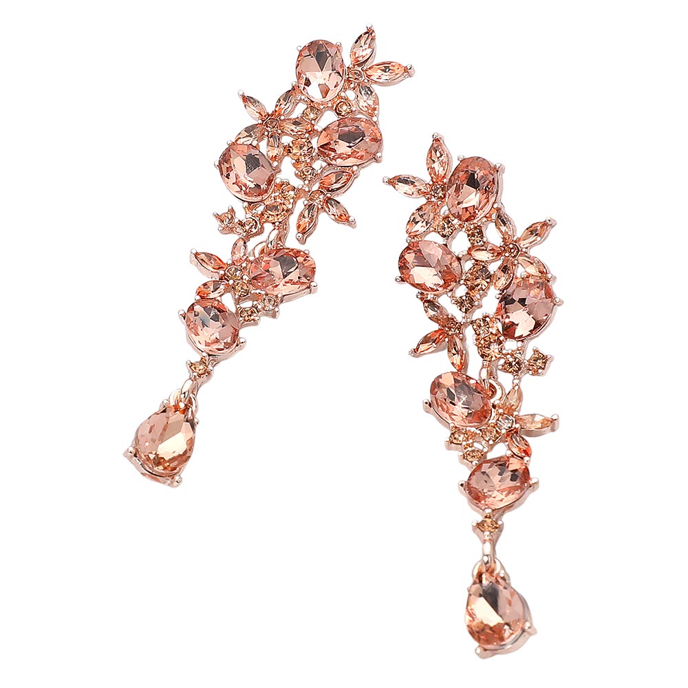 Floral Gem Cluster Drop Evening Earrings Floral Gem Cluster Drop Evening Earrings