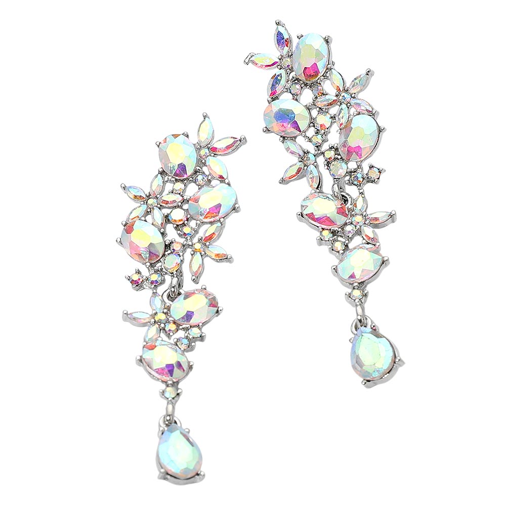 Floral Gem Cluster Drop Evening Earrings
