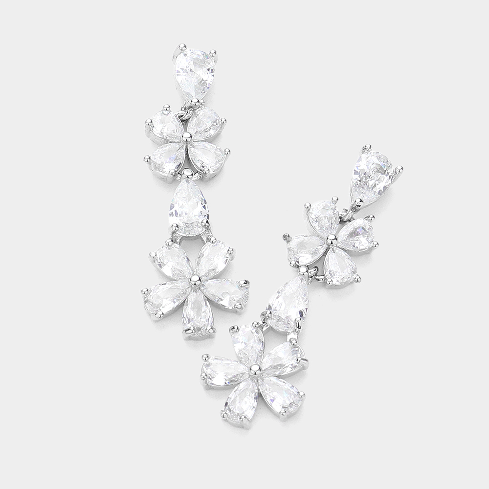 Flower CZ Stone Pointed Link Evening Dangle Earrings