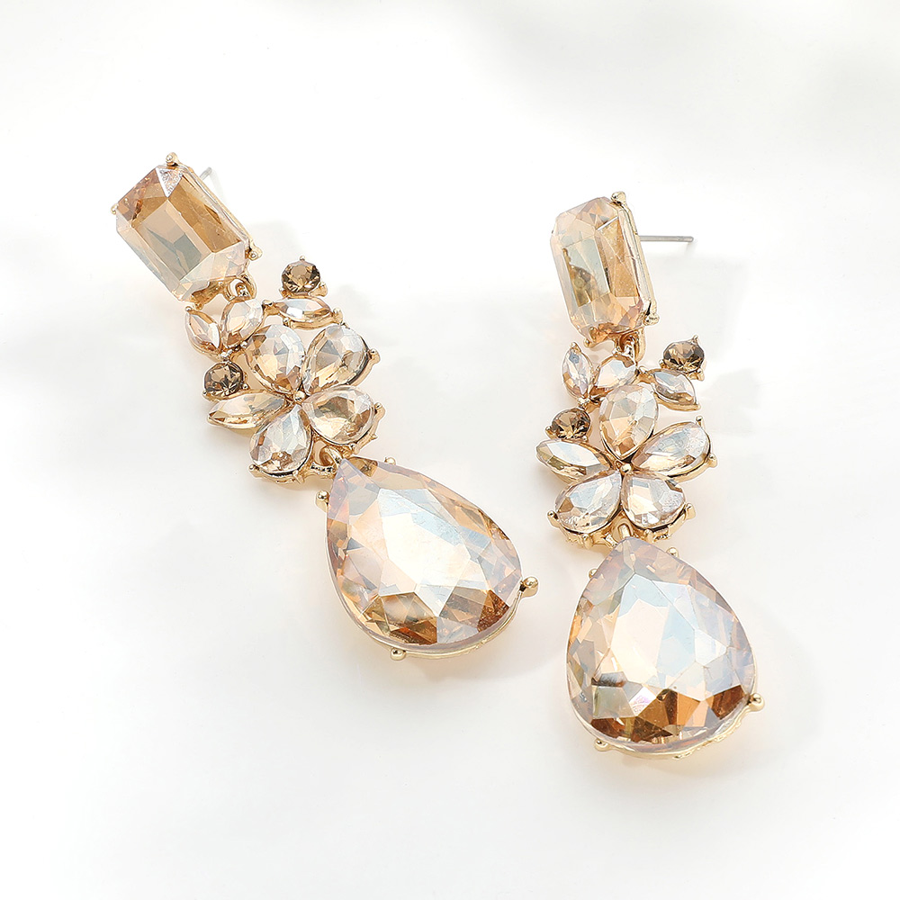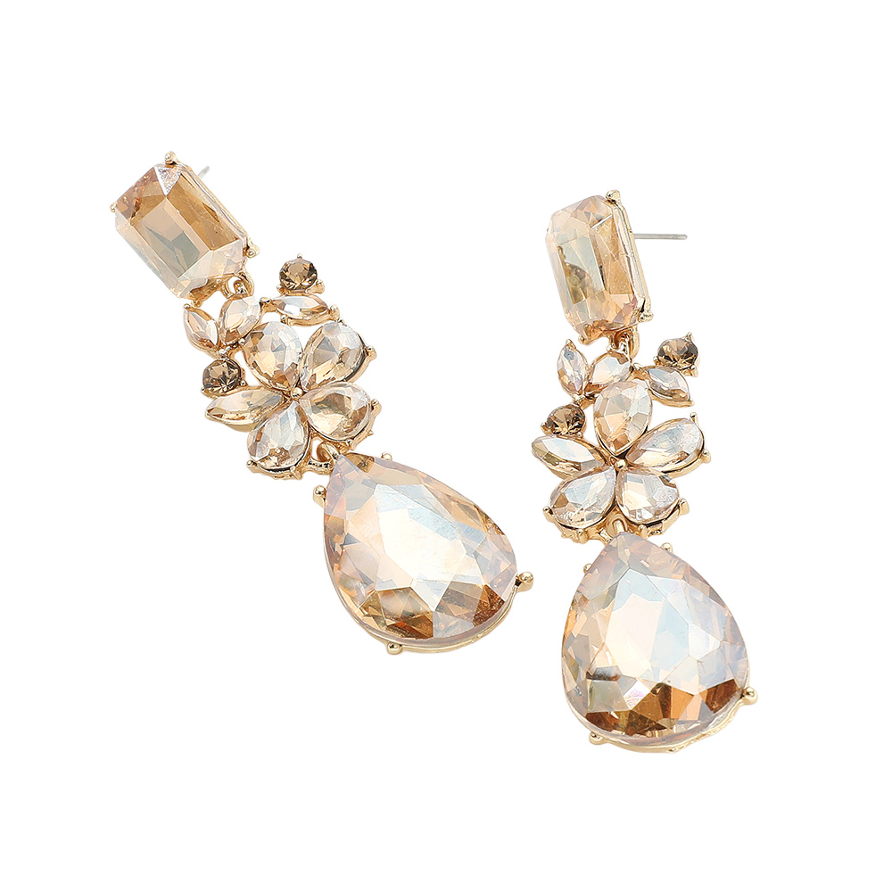 Flower Teardrop Stone Cluster Dangle Evening Earrings