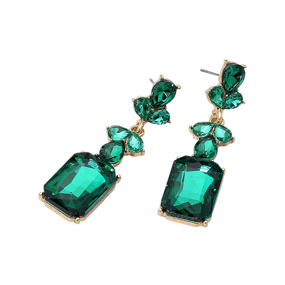 • These geometric drop statement earrings feature a bold, faceted design with a cascading arrangement of gem-like shapes. Perfect for adding a touch of sophistication to evening looks, they combine modern elegance with timeless glamour—ideal for special occasions or chic events.
