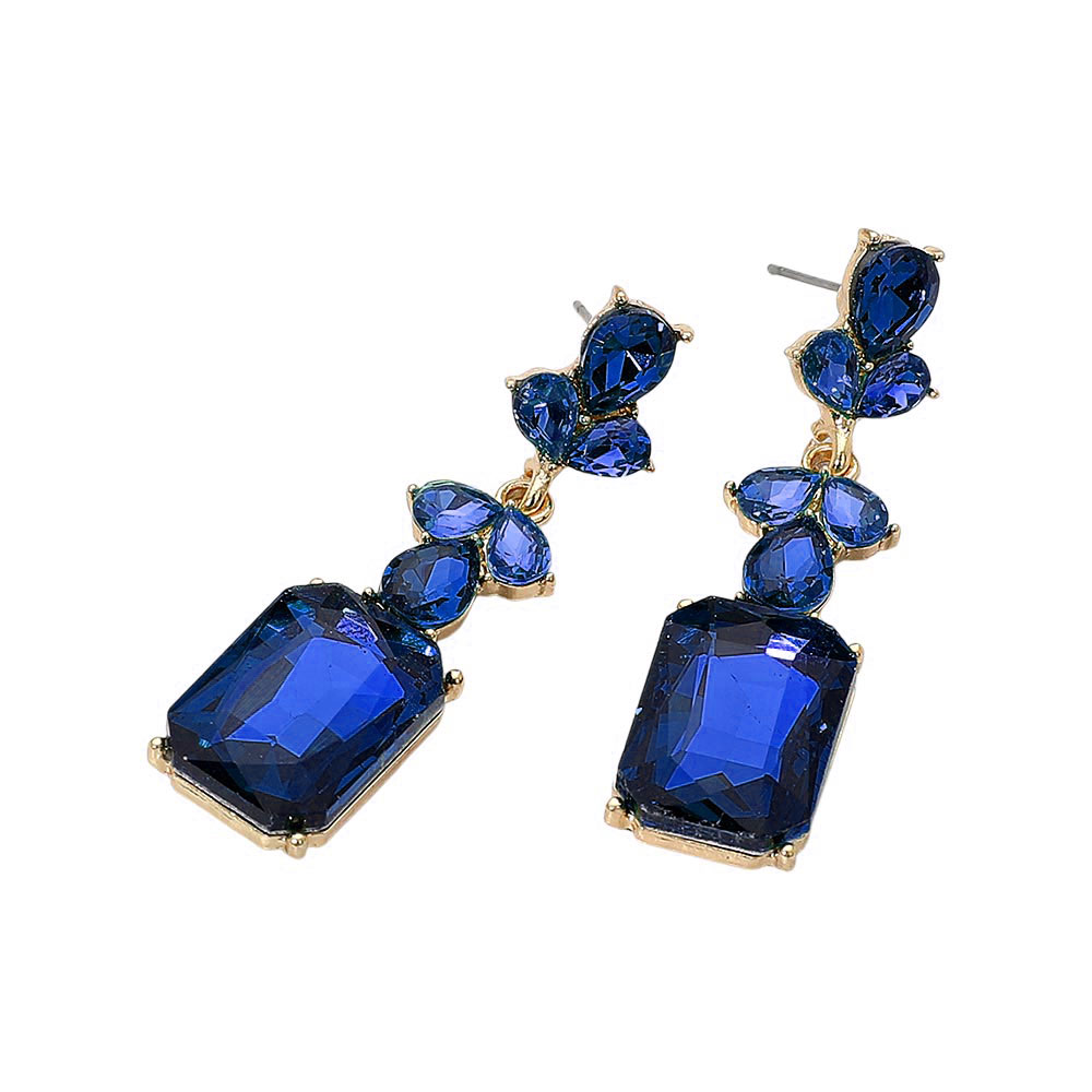 • These geometric drop statement earrings feature a bold, faceted design with a cascading arrangement of gem-like shapes. Perfect for adding a touch of sophistication to evening looks, they combine modern elegance with timeless glamour—ideal for special occasions or chic events.