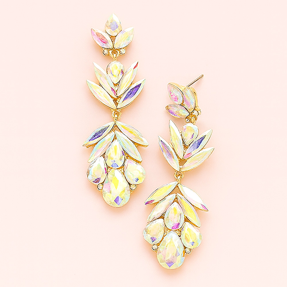 • Elevate your style with these crystal drop leaf earrings. Designed with layered marquise and teardrop crystals in a cascading silhouette, they exude sophistication and glamour, perfect for weddings, evening parties, or special celebrations.