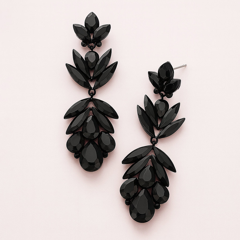 • Elevate your style with these crystal drop leaf earrings. Designed with layered marquise and teardrop crystals in a cascading silhouette, they exude sophistication and glamour, perfect for weddings, evening parties, or special celebrations.