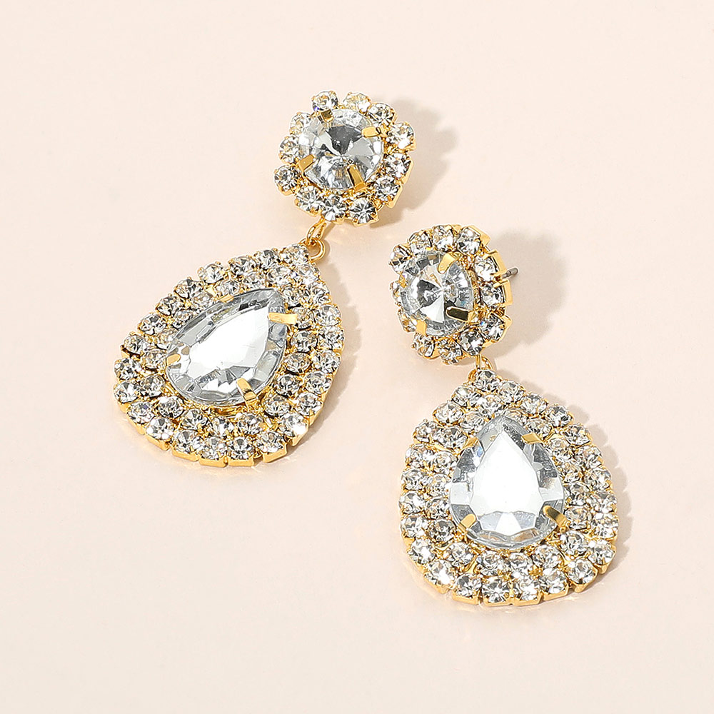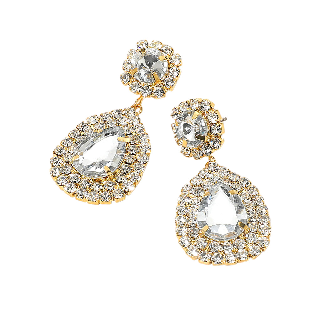 • Elegant teardrop statement earrings featuring a brilliant halo of crystals and a shimmering centerpiece. Perfect for weddings, formal events, or glamorous nights out, these earrings add radiant sparkle and sophistication to any outfit while ensuring timeless appeal.