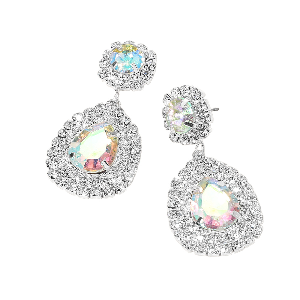 Glass Crystal Teardrop Evening Earrings