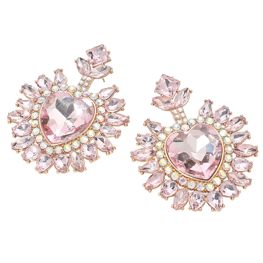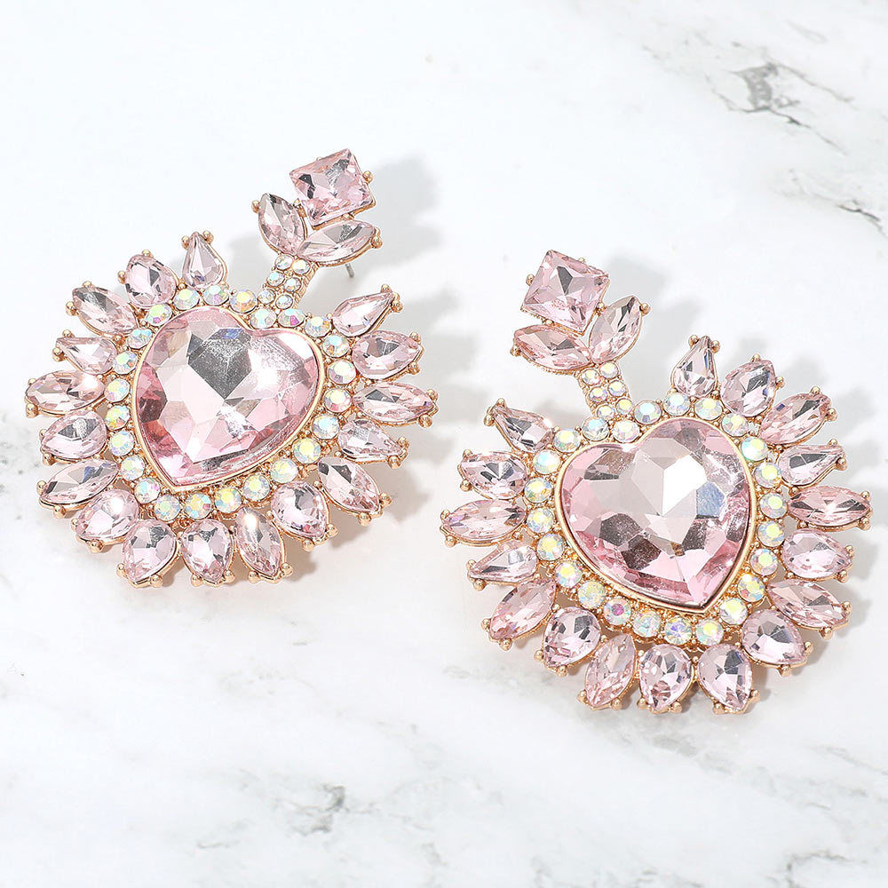 • Heart crystal statement drop earrings featuring a bold faceted center and radiant surrounding details. Designed to catch the light from every angle, this dramatic yet elegant style is perfect for special occasions, evening wear, and boutique collections seeking standout, romantic jewelry with strong visual impact.