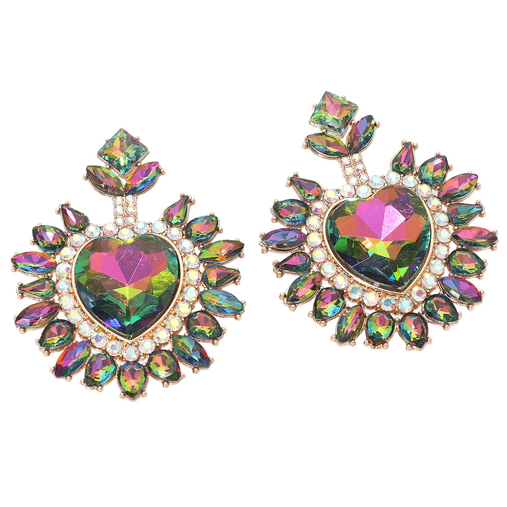• Heart crystal statement drop earrings featuring a bold faceted center and radiant surrounding details. Designed to catch the light from every angle, this dramatic yet elegant style is perfect for special occasions, evening wear, and boutique collections seeking standout, romantic jewelry with strong visual impact.