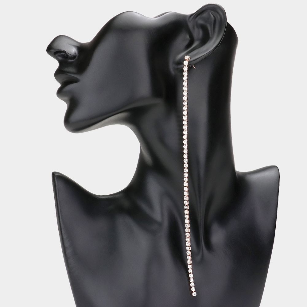 Long Dropped Rhinestone Linear Dangle Evening Earrings