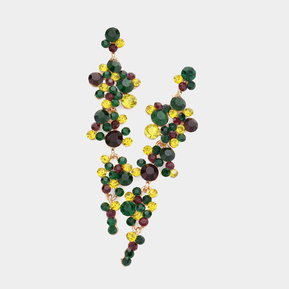 Mardi Gras Bubble Stone Cluster Dangle Evening Earrings