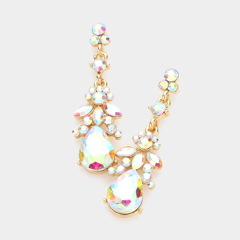 Flower CZ Stone Cluster Teardrop Dangle Evening Earrings