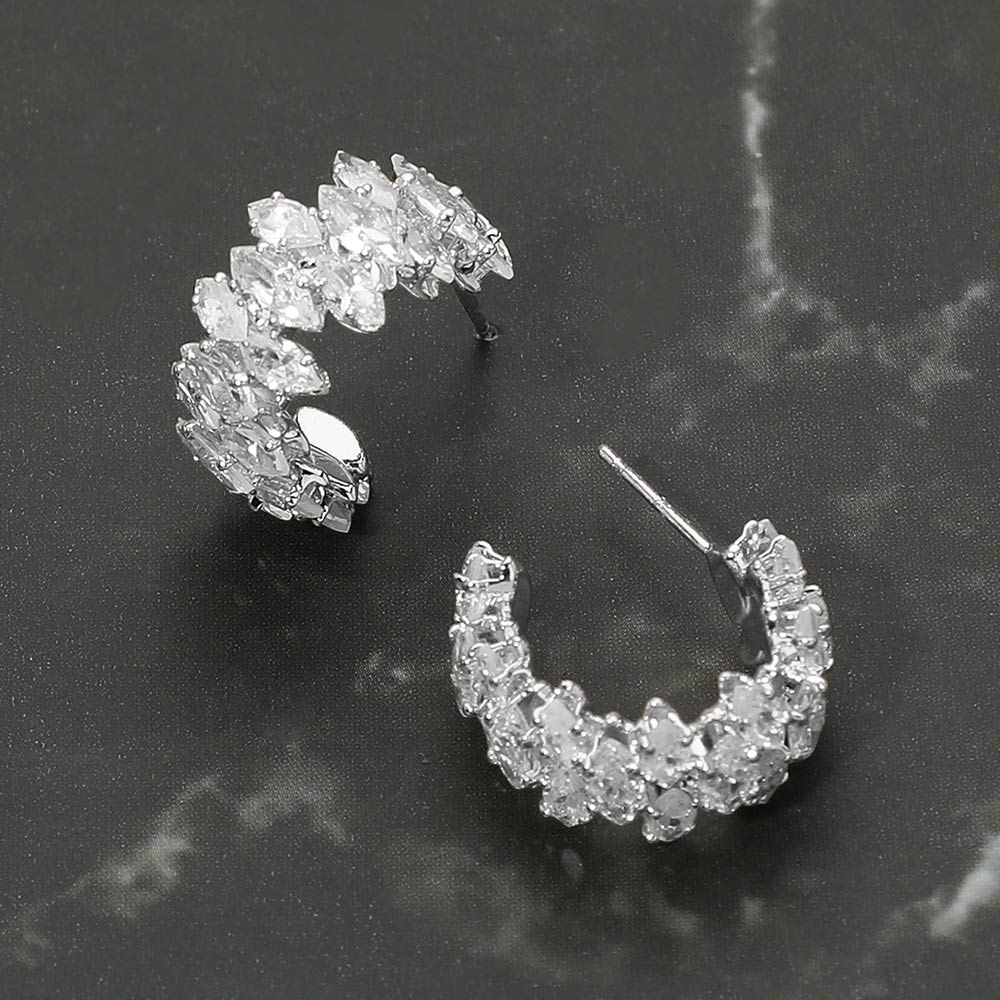 • Elegant half hoop earrings designed with closely set faceted stones that create continuous sparkle and a refined curved silhouette. These statement earrings offer a balanced blend of glamour and everyday wearability, making them ideal for dressing up casual looks or completing evening outfits with polished shine.