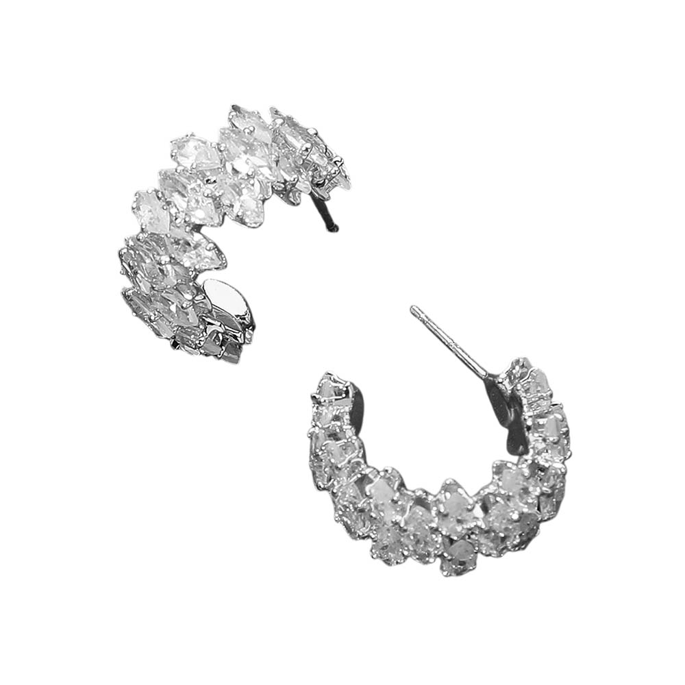 Marquise CZ Stone Cluster Embellished Evening Hoop Earrings Marquise CZ Stone Cluster Embellished Evening Hoop Earrings