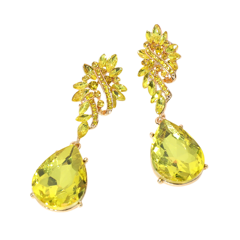 Marquise Stone Cluster Teardrop Dangle Evening Earrings