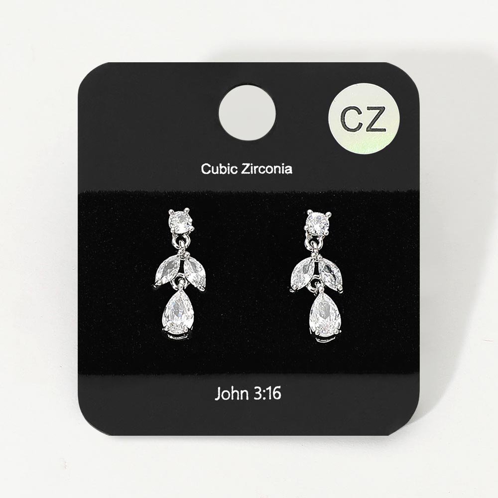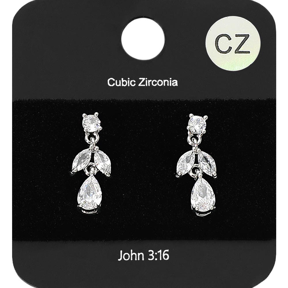 Details • Size : 0.25" X 0.75" • Post Back • These elegant marquise and teardrop cubic zirconia drop earrings feature a refined design with delicately arranged stones for a graceful shimmer. Perfect for evening wear, weddings, or formal occasions, they bring timeless beauty and understated sparkle to any sophisticated ensemble. • CZ Cubic Zirconia • Lead and Nickel Compliant