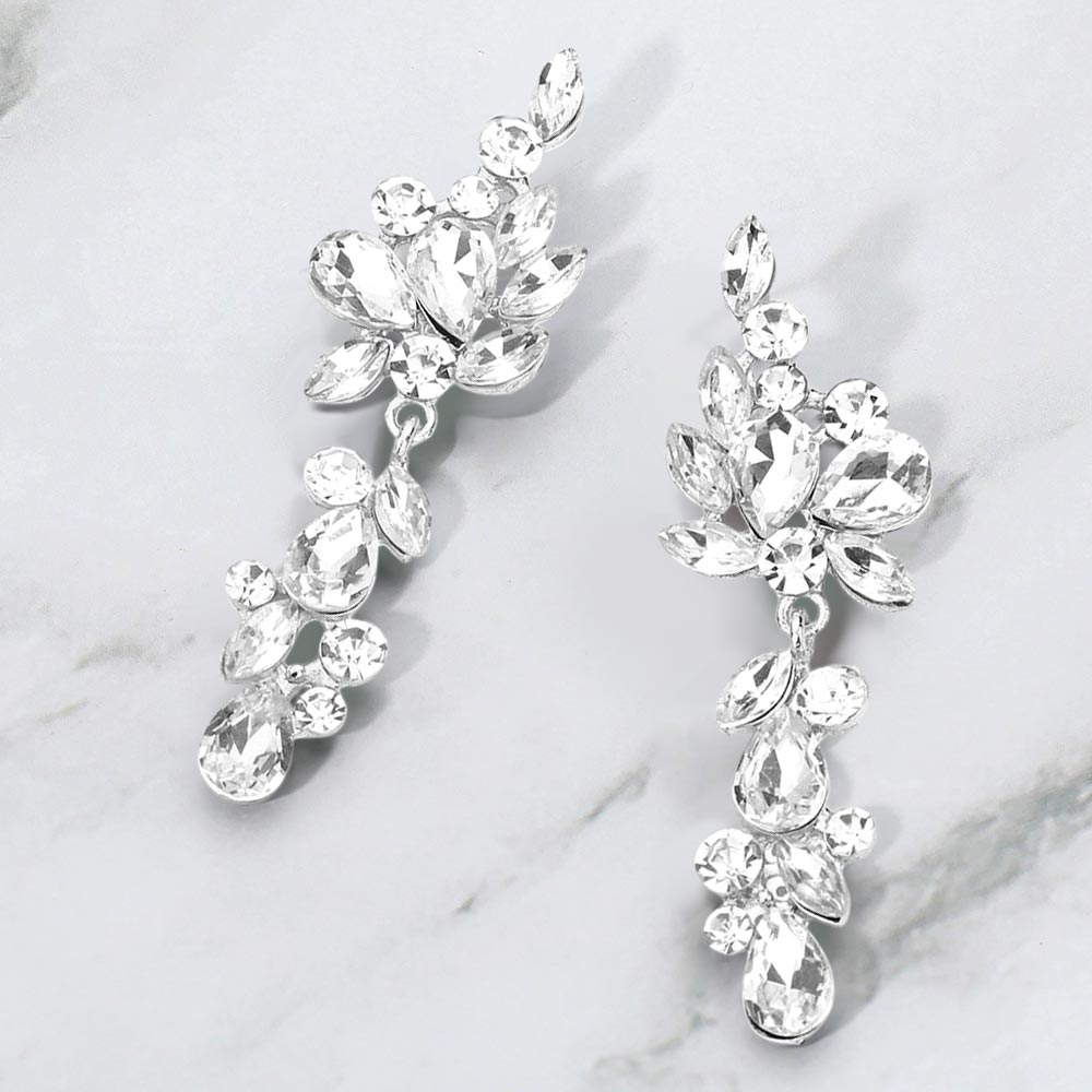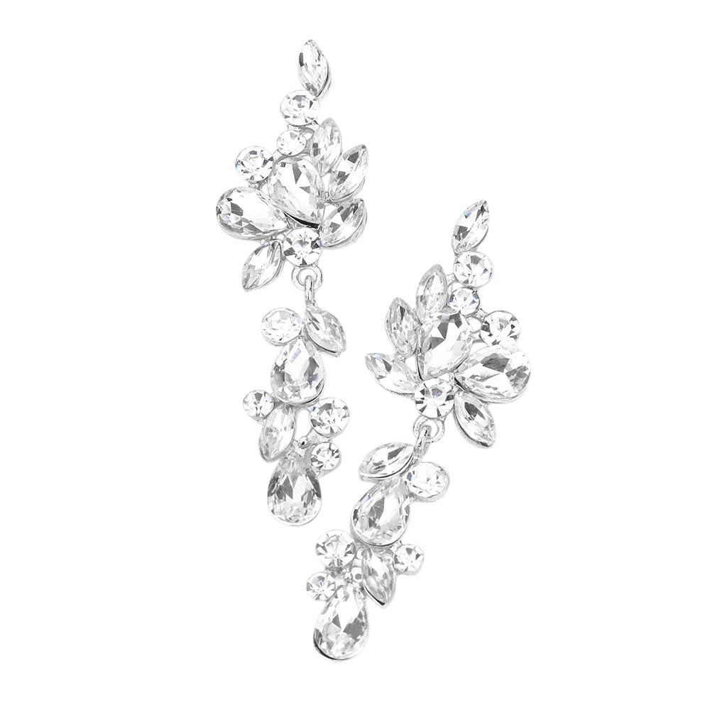 Multi Stone Cluster Vine Dangle Evening Earrings Multi Stone Cluster Vine Dangle Evening Earrings