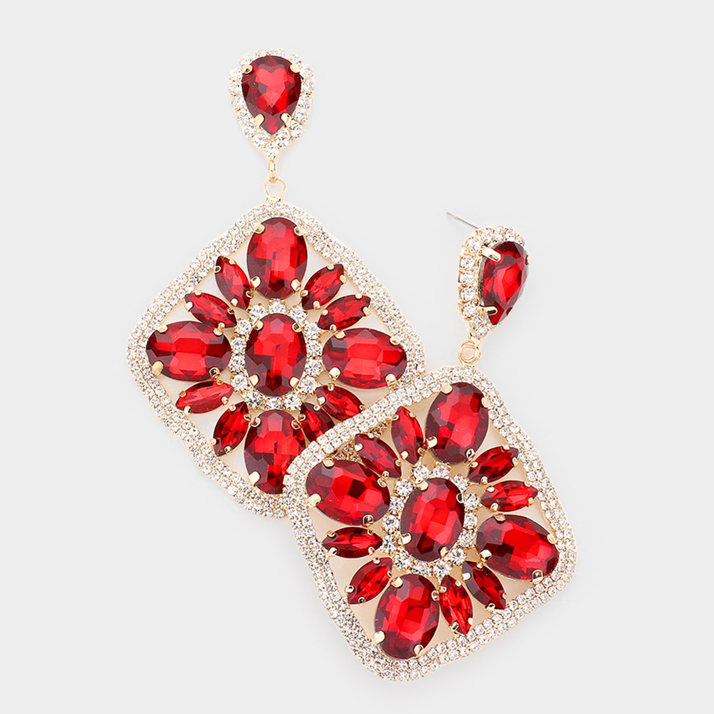 Oval Marquise Stone Cluster Accented Rhinestone Rhombus Dangle Evening Earrings