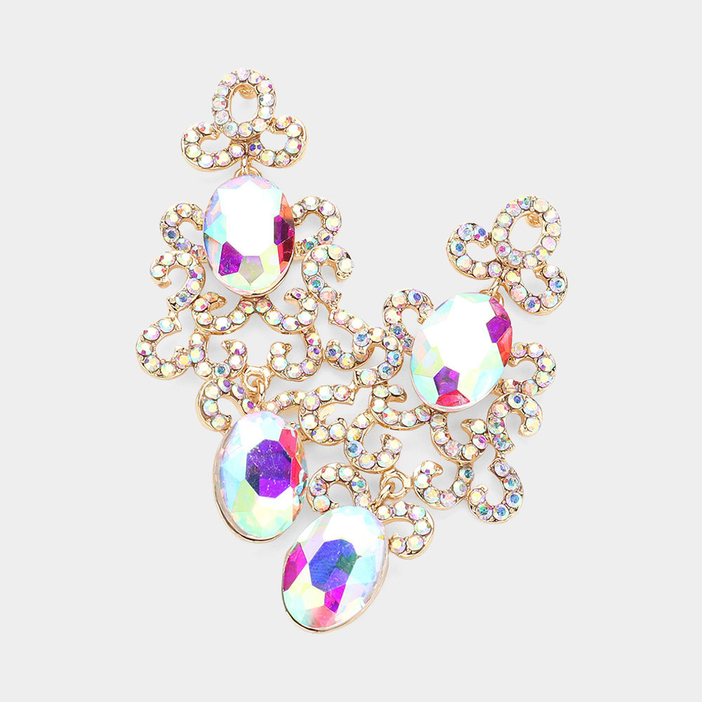Oval Stone Pointed Abstract Dangle Evening Earrings