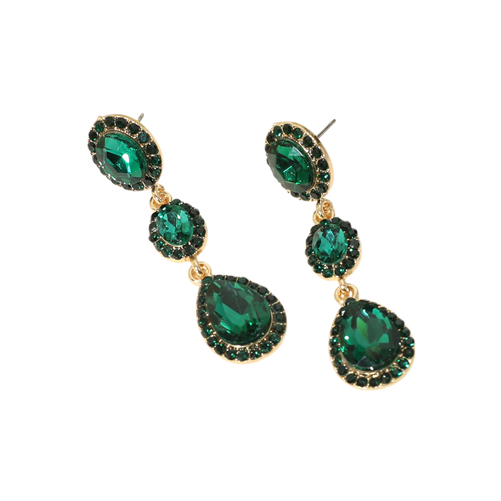 Details • Size : 0.6" X 2.1" • Post Back • Shine bright with these triple teardrop crystal drop earrings featuring dazzling stones in a cascading design. Perfect for weddings, galas, or nights out, they add refined sparkle and timeless elegance to any outfit, effortlessly elevating your look with radiant sophistication. • Lead and Nickel Compliant