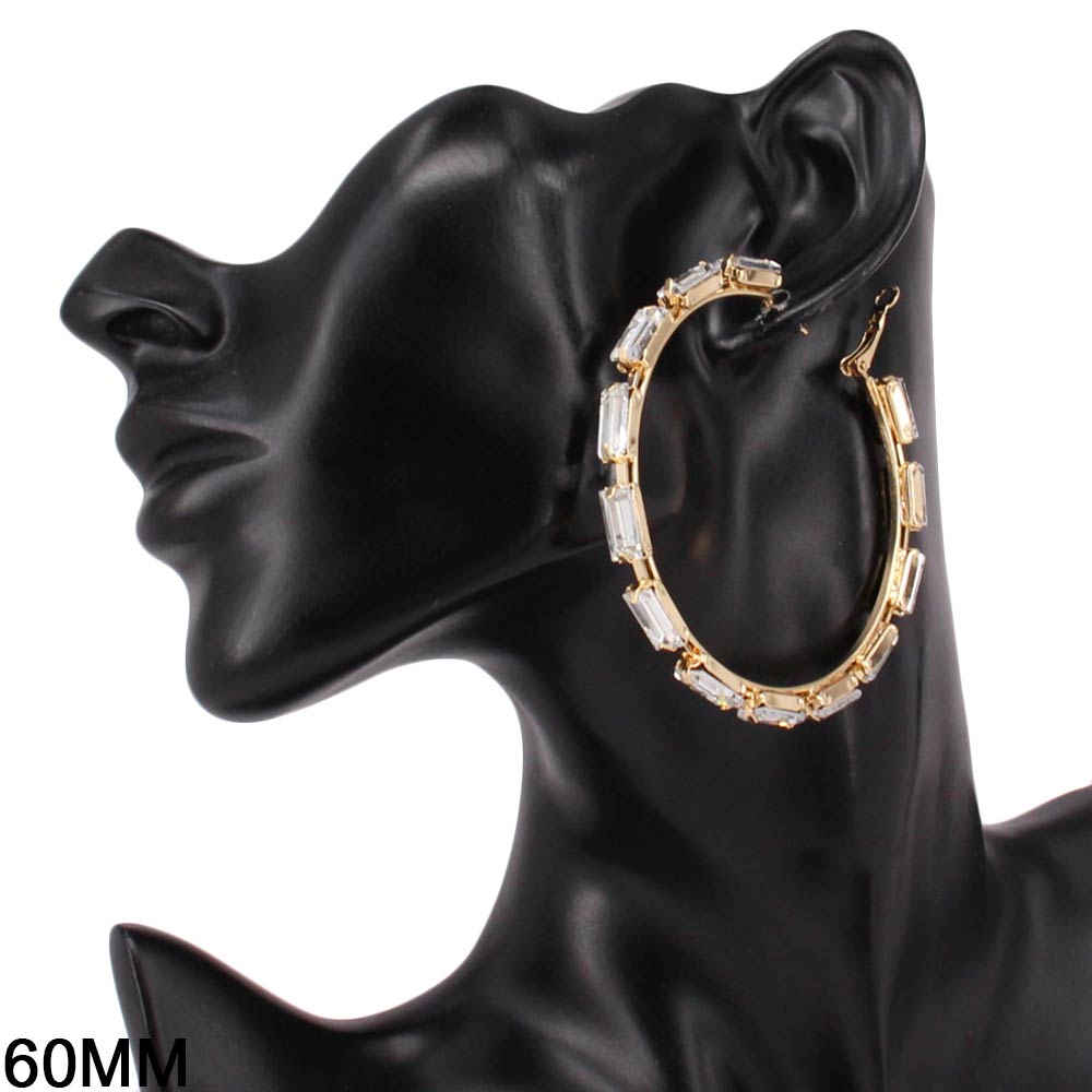 Details • Size : 2.75" X 2.75" • Omega Closure • Bold statement hoop earrings featuring a sleek baguette-inspired silhouette that adds structure and shine to any look. Designed for trend-forward styling, these hoops elevate everyday outfits, evening wear, and boutique collections with a confident, fashion-focused edge. • Lead and Nickel Compliant