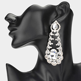 Oversized Oval Teardrop Stone Cluster Accented Rhinestone Chandelier Evening Earrings
