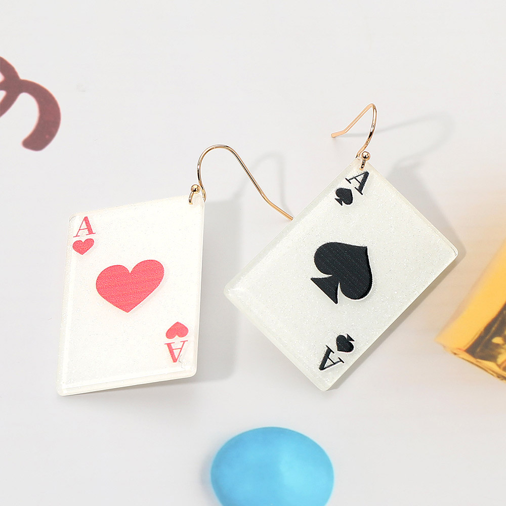 Details • Size : 1" X 2" • Fish Hook Back • Make a bold statement with these Ace playing card drop earrings, featuring the iconic heart and spade design. Their playful and unique charm adds a fun twist to your style. Perfect for casino nights, themed events, or anyone who loves to accessorize with confidence and flair. • Lead and Nickel Compliant