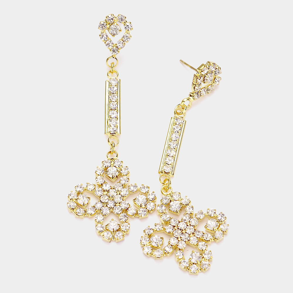 Rhinestone 4-Leaf Clover Dangle Evening Earrings